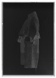 Keywords: Byxor av brunaktig grå, oskuren sammet som tillhört Karl X Gustav (1622-1660), ca 1650 - Livrustkammaren - 78404-negative.tif Byxorna är av samma grå oskurna sammet som kappan och av rak modell De är gjorda av 4 stycken som förutom sidorna sytts samman fram och bak Mitt framtill är ett c a 30 cm långt sprund som knäpps med en 25 cm lång knäppslå Byxorna är med glesa rynkor fästade vid en 122 cm lång linning - försedd med blott en enda skarv Denna har 6 metallhakar vilka genom fodret på baksidan trätts genom linningen I linningen återstår för närvarande blott de 5 cm långa knapphålen ty de 2 knapparna saknas I knäppslån sitter 8 st knapphål 2 cm långa sydda av 2 trådar av brunt högertvinnat silke med 5 stygn/cm Samma antalknappar finns kvar på motstående sida De är av samma sort som tröjans guld- och silvertrådsklädda knappar Byxorna har i sidsömmarna 17 cm långa sprund för de stora ficksäckarna av skinn Dessa liksom knäppslån är fodrade med samma slags brokad som tröjansfoder <br/><br/>Anmärkningsvärt är att dessa byxor saknar såväl den vanligen förekommande lilla urfickan i linningen på vänster sida framtill som den mindre vertikala fickan på högra framsidan Byxorna är på insidan fodrade med vit linnelärft c a 26x23 tr/cm2 mellanfoder saknas Byxorna är garnerade med en 15 5 cm bred oliksidig knypplad uddspets av guld- och silvertråd samma slag som på kappan Den är påsydd i 2 rader nertill runt benen samt 1rad på varje sida om sidsömmen Som garnering har dessutom bandrosetter sytts fast runt hela midjan delvis på och delvis strax under linningen <br/><br/>Nu finns 20 st sådana rosetter samt något längre ner framtill 3 rosetter på vänster sida och 2 på höger Spår efter ytterligare 2 rosetter finns på linningen och vidare bör det ha funnits en rosett som sprättats bort från höger sida M a o det stämmer bra med 1671 års inventarium som omtalar 28 st silver- guld- och silkesband Rosetterna har knutits i 2 öglor och 2 ändar dels av ett bredare band i silver och mörk olivfärgat silke b 3 3 cm delas av ett smalare band knutet på samma sätt i övervägande vitt och silver b 1 2 cm Bandåtgången kan beräknas till varje rosett av det breda bandet har dragit c a 58 cm varje rosett av det smala bandet har dragit c a 56 cm Om det ursprungligen funnits 28 rosetter har bandåtgången varit 16 24 meter för breda band och 15 68 meter för smala band <br/><br/>Där spetsgarneringen fastsytts har man under sammeten lagt in ett foder av grövre vävnad På höger framsida har byxorna ett urbränt stycke i linnefodret Likaså är hål brända på byxornas insida vid hakarna närmast fickorna Vid något senare tillfälle har man lagt ett veck framtill på varje sida på linningen och 2 hyskor och hakar har sytts fast Byxorna är märkta med bläck baktill N 44 samt har en lapp med inskr 34 Det förra numret från 1789-90 års inventarium det senare till 1821 1850 och 1855 års inv original caption 1647 velvet Färg grå d1 - dräkt - yttermaterial material sammet size cm 122 midjemått LRK Karl X Gustav av Sverige Tre Karlar 1984-1985 Kungligt klädd 1987-1989 Modelejon 2002 place of origin original filename LN_B10719_013599 56375 inventory number LRK 19830 78404 CC0 Byxor av brunaktig grå oskuren sammet som tillhört Karl X Gustav 1622-1660 ca 1650 - Livrustkammaren - 78404 tif <gallery caption Different images of same object > File Byxor av brunaktig grå oskuren sammet som tillhört Karl X Gustav 1622-1660 ca 1650 - Livrustkammaren - 9919 tif File Byxor av brunaktig grå oskuren sammet som tillhört Karl X Gustav 1622-1660 ca 1650 - Livrustkammaren - 18481 tif File Byxor av brunaktig grå oskuren sammet som tillhört Karl X Gustav 1622-1660 ca 1650 - Livrustkammaren - 1359 tif </gallery> |