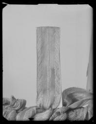 | Keywords: Byxor av guldlamé helt täckt av guldbroderi - Livrustkammaren - 2582.tif LSH artwork sv Dräkten beställdes 1654 från Frankrike genom Magnus Gabriel de la Gardie inför festligheterna vid Karl X Gustavs kröning och efterförljande bröllop Byxor av rak modell De är sydda av 4 egentliga huvudbeståndsdelar som dock försetts med skarvar av något varierande storlek nertill horisontellt för att öka längden samt vertikala ökningstycken framtill vid sprundet och på motsvarande ställen baktill och slutligen nertill vid byxbenens inre sömmar Ursprungsmaterialet är gul filemort oskuren sammet men skarvstyckena är något mörkare med dragning åt rött i färgen Ursprungsmaterialets vådbredd är minst 43 cm 14 rader oskurna öglor på rätan Byxorna har raka sömmar i sidorna och svagt sneddade fram och baksömmar Framtill är ett 34 cm långt sprund När sprundens längd angives i texten inbegripes aldrig linningen med en c a 29 cm lång knäppslå med 12 knapphål knäppslån följer i hela sin längd det iskarvade mörkare stycket framtill Byxorna är något rynkade vid den 127 5 cm långa linningen som också försetts med flera skarvar baktill I denna finns de 2 stora 2 1 cm i diam guldtrådsklädda knapparna kvar De knäpps med de 4 cm långa knapphålen på vänster framsida I linningen finns 7 st silverhakar kvar den främsta på vänster sida som skulle träs genom det lilla tränsade hålet vid urfickan saknas Linningen är gjord av något grövre oskuren sammet Linningsknapparna är av samma typ som den som finns kvar i byxorna till dräkt nr 3418 De 2 stora byxfickorna har 22 5 cm långa vertikala sprund i sidsömmarna Ficksäckarna är av skinn På höger framstycke finns också en mindre ficka med vertikalt sprund 19 cm från framkanten räknat Dessa 3 fickor har stoffering med gul moiré samma sort som också begagnats i fickan på byxlinningen till dräkt nr 3418 Knapphålsslån är på rätan gjord av guldbrokad av samma sort som tröjans foder och av relativt mörk sammet på baksidan De 2 cm långa knapphålen är sydda med 8 stygn/cm av gult högertvinnat silke Ficksprunden och knäppslån samt sprunden vid framkanterna är skodda med kastanjebrunt ripsband 14 inslagstr/cm Mellanfoder finns ej i byxorna men de har innerfoder av ursprungligen vit linnelärft 28x28 tr/cm2 Nedtill kan man i fodret se hål efter stygn ca 3 5 cm från kanten som tyda på att en slå eller skoning varit sydd på insidan Byxorna har garnerats med spets knypplad av guldtråd och med inlagda guldlan - samma typ som på tröjan Analysresultat Metalltråd av förgyllt silver legerat med koppar huvudbeståndsdelar Silver xxxGuld xxKoppar xxxZink 0Numera finns det spets kvar blott nedtill vid benen ca 1 8 cm bred Den är knypplad av ljusgul silkeskärna med högertvinnad guldlan samt 2 bandformiga lan varav en ligger intill spetsens stadkant och en i vinkelböjning lanen är 2 mm bred Förutom av spetsen nertill garneras byxorna av rosetter framtill av vilka de ursprungliga 5 alltjämt finns kvar på varje sida 3 i en övre horisontell rad och 2 därunder Rosetterna består dels av ett 2 5 cm brett metalltrådsband med 2 atlasränder av rött silke ca 18 inslagstr/cm som knutits i 3 öglor varje ögla 16 á 17 cm lång samt dels ett 4 2 cm brett metalltrådsband med bl a mönstervävda ränder i brunt silke 17 inslagstr/cm som också knutits i 3 öglor c a 16 cm i varje ögla Analysresultat band huvudbeståndsdelar Silver xxxGuld 0Koppar xZink 0På byxornas bakstycken finns ett par vertikala uppklipp ca 15 cm långa som sytts ihop På vänster sida framtill i linningen är byxorna på insidan märkta med bläck N 39 i 1789-90 års inv och de är urbrända i jämnhöjd med knapphålsslån ett stycke in i fodret Beträffande broderiets karaktär kan nämnas att de mörkare partierna skarvats om till det ursprungliga plagget har broderats med visserligen samma mönster men mer utdraget glesare och spretigare och samtidigt svulstigare och man har tydligen inte vetat vilka mönsterdetaljer som är huvudsakliga och vilka som är underordnade Sålunda har palmbladskvistarna vanligen 4 kvistar åt resp håll på det ursprungliga broderiet men oftast blott 3 på de mörkare partierna Bladkvistarna har i de nyare - sekundära mörkare styckena blivit lika breda nedtill som upptill vilket också utgör en skillnad mot det ursprungliga broderiet Vidare är bågarna som hålla palmkvistarna mer svängda och har 7 jämnstora kulor över sig Man har dock i de tillskarvade partierna låtit mönstret fortsätta på det mest eleganta sätt Blott i sidsömmarna stämma mönstren numera ej överens men här har ju en spets dolt sömmen Det gamla broderiet verkar därtill gulare I byxornas nederkant fortsätter broderiet i det lilla upp- och invikta stycket Här har man alltså haft en ytterligare marginal att släppa på Broderiet har ej avpassats efter plaggets form med någon avslutande bård eller dylikt nedtill det är helt yttäckande och följer materialets riktning original caption Karl X Gustavs kröning 1654 linen Färg vit d2 - dräkt - foder material linnelärft - velvet Färg gul röd d1 - dräkt - yttermaterial material sammet size mm 127 5 midjemått LRK Karl X Gustav av Sverige Tre Karlar 1984-1985 Sweden - A Royal Treasury 1988-1989 Modelejon 2002 Les arts décoratifs sous Louis XIII 2002 Sweden and Europe 1632-1792 2003-2004 Fest och fritid vid hovet 2003 Livrustkammaren nya basutställning 2018 LRK bas 2018 Livrustkammaren place of origin original filename LN_E04586 67902 inventory number LRK 31309 2582 CC0 Byxor av guldlamé helt täckt av guldbroderi - Livrustkammaren - 2582-negative tif <gallery caption Different images of same object > File Byxor av guldlamé helt täckt av guldbroderi - Livrustkammaren - 11141 tif File Byxor av guldlamé helt täckt av guldbroderi - Livrustkammaren - 79627 tif File Byxor av guldlamé helt täckt av guldbroderi - Livrustkammaren - 45384 tif F