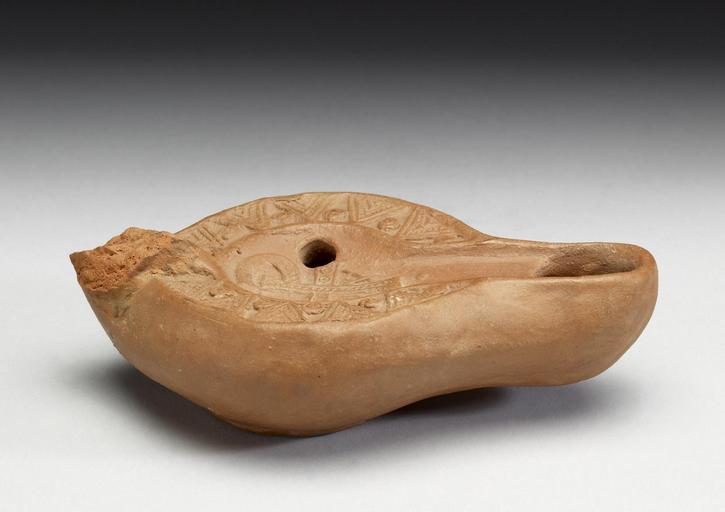 Keywords: Byzantine - Chrismon Lamp - Walters 482569 - Side A.jpg This terracotta lamp displays the superimposed Greek letters Chi X and Rho P the monogram of Christ These initials form a symbol that serves as an invocation or appeal for his divine protection People used clay oil lamps to light their homes and when decorated with Christian symbols to refer to Christ as the symbolic light of the world century 4 Late Antique terracotta cm 3 3 10 6 6 5 accession number 48 2569 32928 Pete N Nickolas Helios Old World Antiquities Westminster Maryland by purchase Walters Art Museum 1987 by purchase Museum purchase 1987 place of origin North Africa Walters Art Museum license Ancient Roman art in the Walters Art Museum Byzantine and Early Russian art in the Walters Art Museum Decorative and applied arts of Byzantine Empire Media contributed by the Walters Art Museum needs category review Ancient Roman oil lamps in the United States