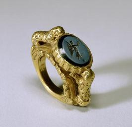 | Keywords: Byzantine - Ring - Walters 57542 - Profile.jpg The blue nicolo itaglio has a delicate figure of Nike Victory standing on an orb and holding a wreath in her outstretched hand The circular bezel is almost completely separated from the hoop and is held up by a pair of leopards Other rings of this type contain coins of emperors of the 3rd and 4th centuries This ring was most likely a reward given by an emperor to a successful military leader century 4 Late Antique gold nicolo onyx niello cm 3 18 4 45 accession number 57 542 38099 Henry Walters Baltimore date and mode of acquisition unknown Walters Art Museum Henry Walters Acquired by Henry Walters Early Christian and Byzantine Art Baltimore Museum of Art Baltimore 1947 Jewelry - Ancient to Modern The Walters Art Gallery Baltimore 1979-1980 Gold Jewelry Craft Style and Meaning from Mycenae to Constantinopolis Museum of Art Rhode Island School of Design Providence 1983 Bedazzled 5 000 Years of Jewelry from the Walters Art Museum Frist Center for the Visual Arts Nashville; The John and Mable Ringling Museum of Art Sarasota; The Walters Art Museum Baltimore 2006-2009 Bedazzled 5 000 Years of Jewelry El Paso Museum of Art El Paso 2010 place of origin Eastern Mediterranean Walters Art Museum license Byzantine and Early Russian art in the Walters Art Museum Jewellery in the Walters Art Museum Byzantine rings Media contributed by the Walters Art Museum needs category review |