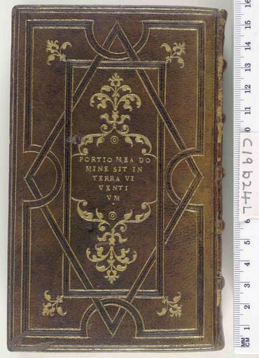 | Keywords: C. Plinii Secundi Naturalis Historiae prima (-tertia) pars. 4 vols. - Lower cover (c19b24).jpg Style Interlacing ribbon/strapwork Mottoes; Caption Lower cover; Colour Brown; Edge Unspecified exhibition history Decorative Technique Tooled in gold Painted; Cover Material Goatskin includes morocco turkey etc c 1540 Paris bound for J Grolier by Jean Picard Volume described by H M Nixon Bookbindings from the library of Jean Grolier p 27 n 44-47 ; see A Hobson Renaissance book collecting Appendix I Grolier's bindings classified by workshop pp 223-229 IV France 1538-1547 c Jean Picard i With solid or open tools p 226 object history Text 1536 1535 1538; Venice; Grolier Jean 1479-1565 object type Cc-zero place of creation Binding France place of discovery Unspecified British Library image http //www bl uk/catalogues/bookbindings/LargeImage aspx RecordId 020-000006786 ImageId ImageId 42998 Copyright BL C Plinii Secundi Naturalis Historiae prima -tertia pars 4 vols Uploaded with GWToolset C Plinii Secundi Naturalis Historiae prima -tertia pars 4 vols - Lower cover c19b24 http //www webarchive org uk/bldatasets/bindings/7543_4 jpg Bookbinding 16th-century bookbinding British Library Bookbindings |