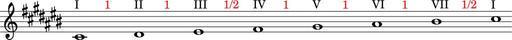 View Original:C sharp major scale with degrees and tones.svg (620x48)