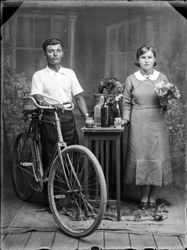 Keywords: costică acsinte archive costicăacsintearchive 20141028 glass plate glassplate ialomita românia rou people groupshot blackandwhite monochrome vehicle bike black and white Cuplu cu bicicletă Cuplu cu bicicletă
