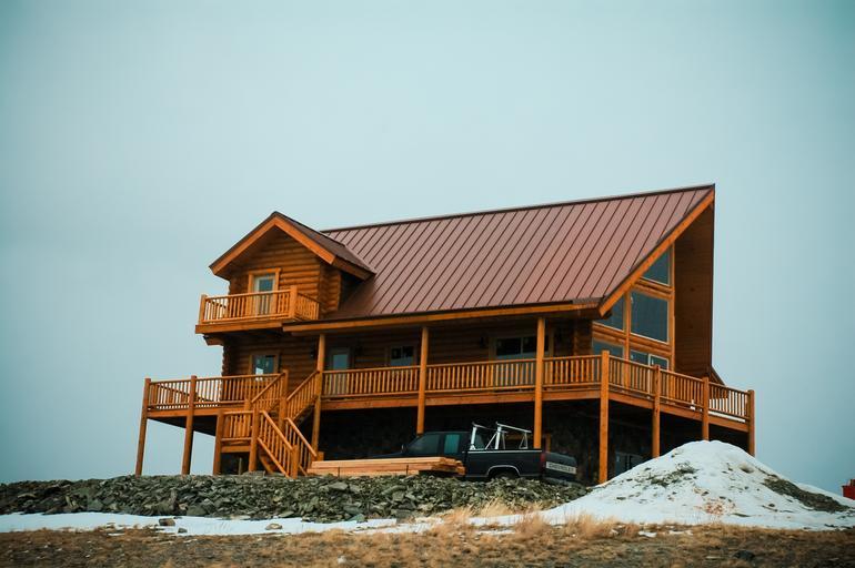 Keywords: cabin house architecture wood wooden building home log cabin hunting cabin timber lumber rustic rural outdoors winter montana hill america usa country
