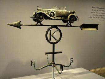 Keywords: Cadillac V16 Sport Phaeton weathervane - SAAM - DSC00807.JPG Cadillac V16 Sport Phaeton weathervane by W W Robbins and J E Evans dates unknown Folk art in the Smithsonian American Art Museum National Portrait Gallery Washington DC USA I took this photograph 2011-04-07 15 33 45 Daderot Public domain Folk art in the Smithsonian American Art Museum Cadillac 452 Weather vanes in the United States |