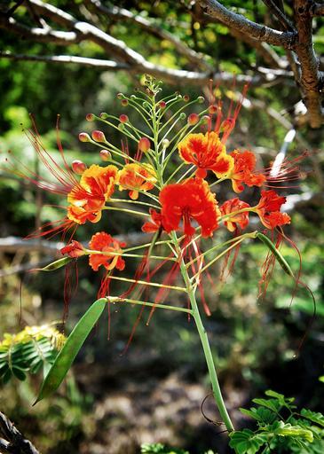 | Keywords: dsc01813 fleur flower ile de la réunion iledelaréunion la reunion island lareunionisland jaune petit flamboyant petitflamboyant st gilles les bains stgilleslesbains jardin d'eden jardindeden 2013 sony nex-3 sonynex3 sel1855 974 foliage plant outdoor tree photo border "Caesalpinia pulcherrima, appelé flamboyant, petit flambloyant, fleur de paon, orgueil de Chine ou bien, en Guyane, macata ou baraguette est un arbuste persistant de 3 à 5 m de haut. Il appartient à la famille des Caesalpiniaceae selon la classification classique, ou des Fabaceae, sous-famille des Caesalpinioideae, selon la classification phylogénétique. Il est originaire des régions tropicales chaudes d'Amérique. C'est l'emblème de la Barbade (Pride of Barbados)." ------------------------------------------------------------------------------------------------------------------- "Caesalpinia pulcherrima is a species of flowering plant in the pea family, Fabaceae, that is native to the tropics and subtropics of the Americas. It could be native to the West Indies,[2] but its exact origin is unknown due to widespread cultivation.[1] Common names for this species include Poinciana, Peacock Flower, Red Bird of Paradise, Mexican Bird of Paradise, Dwarf Poinciana, Pride of Barbados, and flamboyan-de-jardin" "It is a shrub growing to 3 m tall. The leaves are bipinnate, 20–40 cm long, bearing 3-10 pairs of pinnae, each with 6-10 pairs of leaflets 15–25 mm long and 10–15 mm broad. The flowers are borne in racemes up to 20 cm long, each flower with five yellow, orange or red petals. The fruit is a pod 6–12 cm long." Souce: Wikipedia "Caesalpinia pulcherrima, appelé flamboyant, petit flambloyant, fleur de paon, orgueil de Chine ou bien, en Guyane, macata ou baraguette est un arbuste persistant de 3 à 5 m de haut. Il appartient à la famille des Caesalpiniaceae selon la classification classique, ou des Fabaceae, sous-famille des Caesalpinioideae, selon la classification phylogénétique. Il est originaire des régions tropicales chaudes d'Amérique. C'est l'emblème de la Barbade (Pride of Barbados)." ------------------------------------------------------------------------------------------------------------------- "Caesalpinia pulcherrima is a species of flowering plant in the pea family, Fabaceae, that is native to the tropics and subtropics of the Americas. It could be native to the West Indies,[2] but its exact origin is unknown due to widespread cultivation.[1] Common names for this species include Poinciana, Peacock Flower, Red Bird of Paradise, Mexican Bird of Paradise, Dwarf Poinciana, Pride of Barbados, and flamboyan-de-jardin" "It is a shrub growing to 3 m tall. The leaves are bipinnate, 20–40 cm long, bearing 3-10 pairs of pinnae, each with 6-10 pairs of leaflets 15–25 mm long and 10–15 mm broad. The flowers are borne in racemes up to 20 cm long, each flower with five yellow, orange or red petals. The fruit is a pod 6–12 cm long." Souce: Wikipedia |