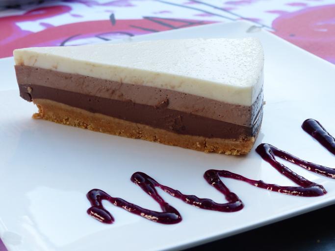 Keywords: cake chocolate cake three-layer ornament delicious sweet dessert white chocolate brown chocolate dark chocolate white brown dark plate