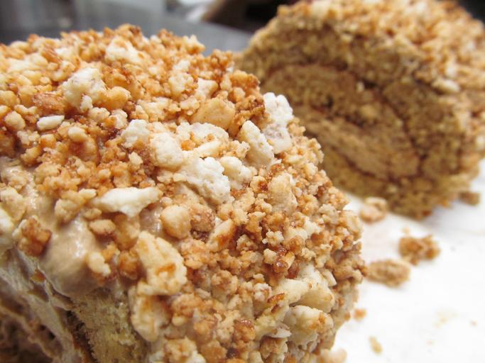 Keywords: cake coffee suites food sugar dessert almond delicious nuts baked goods roll cake