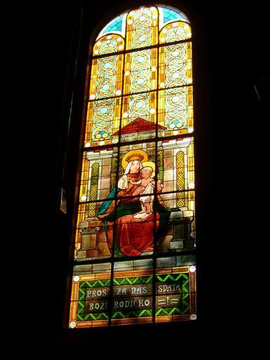 | Keywords: Čakovice-Church-St-Remigius-Window-Maria.jpg Window in the Church of w Saint Remigius en in Prague- Čakovice en the Czech Republic Okno v w Kostel svatého Remigia Čakovice kostele svatého Remigia cs v Praze- Čakovice Čakovicích cs <br />V době Čakovického posvícení oslav 130 výročí posvěcení kostela own 2011-10-01 Jirka23 Cc-zero Interior of the Church of Saint Remigius Čakovice Madonna and Child on stained glass windows | ||||