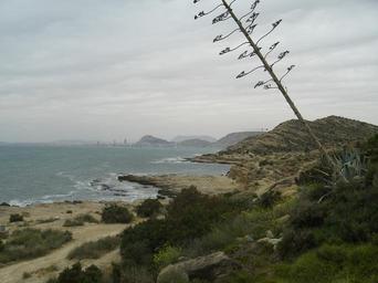 Keywords: Cala Palmera Alicante.JPG Cala de la Palmera Cap de l'Horta Alacant Vista general de la Badia d'Alacant Cala de la Palmera en el Cabo de las Huertas Alicante 2006-04-11 own assumed Kasiber Beaches of Alicante Landscapes of the Land of Valencia Bays of the Land of Valencia Cap de l'Horta |
