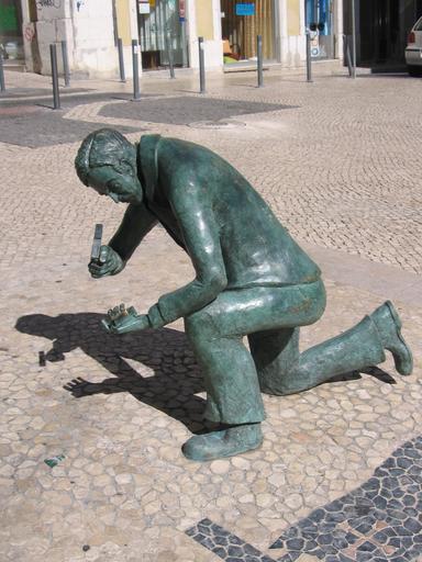 Keywords: Calceteiro1.JPG pt Monumento ao calceteiro em frente à igreja de São Nicolau Baixa Lisboa Portugal Own CorreiaPM 05/07/2008 Statues of kneeling men Challenges to physical balance Statues in Lisbon