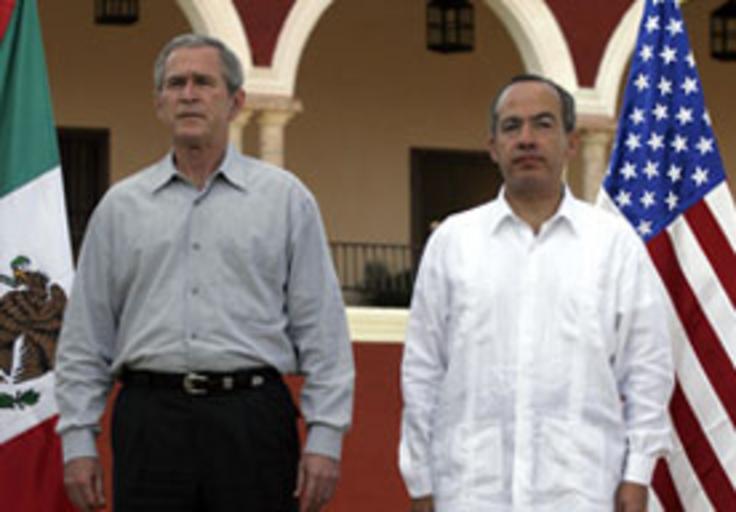Keywords: CalderonBush.jpg English Picture of the President of Mexico Felipe Calderón and the President of the United States George W Bush Author Presidencia de la República Source http //www presidencia gob mx/prensa/discursos/ contenido 29418 License According to http //es wikipedia org/wiki/Wikipedia Autorizaci C3 B3n_ 28Presidencia_de_M C3 A9xico 29 all pictures in http //fuente presidencia gob mx are in the public domain PD-Mexico-NIP Español Fotografía del presidente de México Felipe Calderón con el presidente de Estados Unidos George W Bush Fecha 13 de marzo de 2007 Autor Presidencia de la República Fuente http //www presidencia gob mx/prensa/discursos/ contenido 29418 Licencia De acuerdo con http //es wikipedia org/wiki/Wikipedia Autorizaci C3 B3n_ 28Presidencia_de_M C3 A9xico 29 las fotografías de http //fuente presidencia gob mx son del dominio público Felipe Calderón and George W Bush |