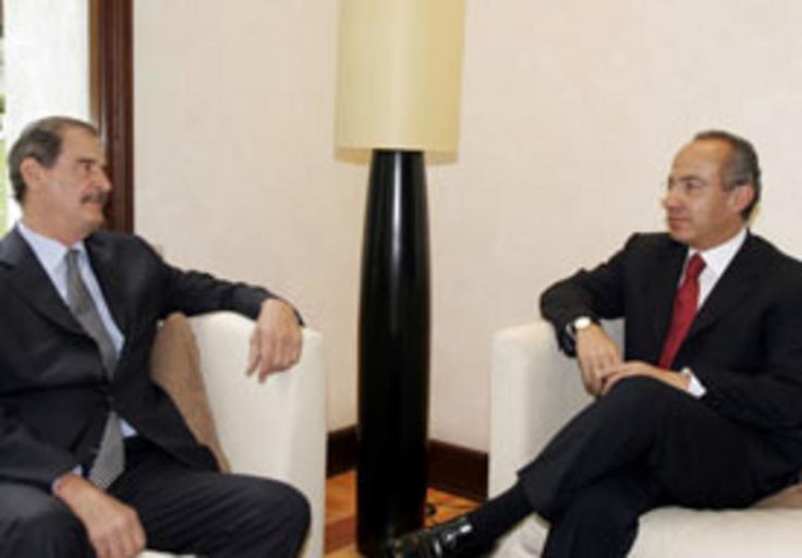 Keywords: CalderonFox.jpg English Picture of the President of Mexico Felipe Calderón and the former president Vicente Fox Author Presidencia de la República Source http //www presidencia gob mx/buscador/index php contenido 29411 License According to http //es wikipedia org/wiki/Wikipedia Autorizaci C3 B3n_ 28Presidencia_de_M C3 A9xico 29 all pictures in http //fuente presidencia gob mx are in the public domain PD-Mexico-NIP Español Fotografía del presidente de México Felipe Calderón con el ex presidente Vicente Fox Fecha 4 de enero de 2007 Autor Presidencia de la República Fuente http //www presidencia gob mx/buscador/index php contenido 29411 Licencia De acuerdo con http //es wikipedia org/wiki/Wikipedia Autorizaci C3 B3n_ 28Presidencia_de_M C3 A9xico 29 las fotografías de http //fuente presidencia gob mx son del dominio público Felipe Calderón Vicente Fox |