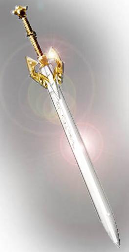 Keywords: CaledfwlchGoldShine.jpg Artist Britton LaRoche In Welsh legend King Arthur's sword is known as Caledfwlch Arthur's sword in his hand with a design of two serpents on the golden hilt; when the sword was unsheathed what was seen from the mouths of the two serpents was like two flames of fire so dreadful that it was not easy for anyone to look 2006-07-17 own assumed BrittonLaRoche~commonswiki Fictional swords |