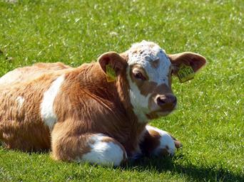 Keywords: calf beef agriculture animal meadow nature cute young calf livestock mammals lying young animal