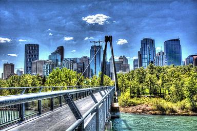 Keywords: calgary city canada alberta skyline river bow bridge business downtown