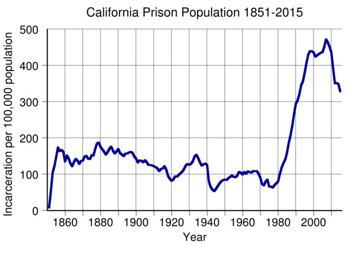 | Keywords: California Prison Population.svg en California prison population from 1851 to present Data from http //casi cjcj org/about html California Sentencing Institute 2013-10-14 own Grendelkhan other versions File California Prison Population png current annually Generated with Wikimedia SVG Chart SVG Chart/box cc-zero Prisons in California Imprisonment and detention rates in the United States Non-photographic illustrations by Grendelkhan | ||||