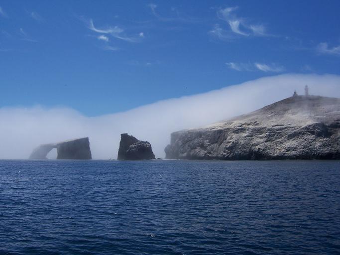 Keywords: california sea ocean water sky clouds nature outside island lighthouse shoreline rocks rocky fog
