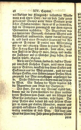 Keywords: Calmet – Gelehrte Verhandlung der Materi, Von Erscheinungen der Geistern, Und denen Vampiren in Ungarn, Mahren etc – Teil II – 048.jpg 047 049