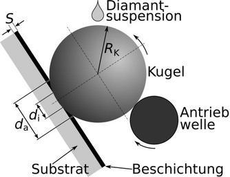 Keywords: Calotte polish german.svg de Die Vorrichtung wird benutzt um ein Kalotte in die Oberfläche eines Festkörpers zu polieren Im Bereich der Kalotte können die Schichteigenschaften daraufhin im Detail untersucht werden Hier wird die Anwendung bei dünnen Hartstoffschichten dargestellt en This device is used to polish/grind a spherical surface in the surface of a solid state This spherical surface can be investigated in detail afterwards In this case here the usage for investigation of thin films/hard coatings is shown 2012-05-06 own Freundchen The embedded texts are in german so you may have to translate it for better understanding cc-zero Uploaded with UploadWizard Materials test Thin-film deposition |
