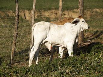 Keywords: calves cattle zebu humped white farm livestock mammal pasture ranch countryside bovine standing brazil