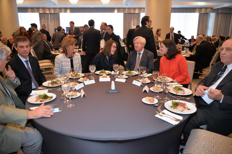 | Keywords: embajada de los estados unidos embajadadelosestadosunidos us embassy usembassy cámara de comercio uruguay estados unidos cámaradecomerciouruguayestadosunidos kelly keiderling kellykeiderling amcham almuerzo anual astori aguerre rossi mccubbin caumont moncecchi indoor meal food dining room dining room conference table table La Embajadora de los Estados Unidos Kelly Keiderling fue la oradora del almuerzo anual de la Cámara de Comercio Uruguay Estados Unidos. En el evento participaron empresarios de todas las ramas y contó con la presencia del Ministro de Economía y Finanzas Cr. Danilo Astori, Ministro de Transporte y Obras Públicas Victor Rossi, Ministro de Ganadería Agricultura y Pesca Ing. Tabaré Aguerre, Sub Secretario de del Ministerio de Industria y Energía Guillermo Moncecchi y el Director de la Oficina de Planeamiento y Presupuesto Cr. Alvaro García. [U.S. Embassy photo: Juan Francisco Casal / Copyright info] La Embajadora de los Estados Unidos Kelly Keiderling fue la oradora del almuerzo anual de la Cámara de Comercio Uruguay Estados Unidos. En el evento participaron empresarios de todas las ramas y contó con la presencia del Ministro de Economía y Finanzas Cr. Danilo Astori, Ministro de Transporte y Obras Públicas Victor Rossi, Ministro de Ganadería Agricultura y Pesca Ing. Tabaré Aguerre, Sub Secretario de del Ministerio de Industria y Energía Guillermo Moncecchi y el Director de la Oficina de Planeamiento y Presupuesto Cr. Alvaro García. [U.S. Embassy photo: Juan Francisco Casal / Copyright info] |