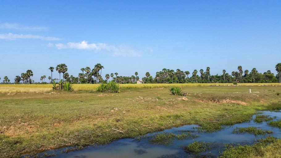 Keywords: cambodia asia siem reap province landscape palm trees rice fields sky