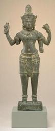 Keywords: Cambodian - The Bodhisattva Avalokiteshvara - Walters 542689.jpg The last great king of Angkor Jayavarman VII turned away from the Hinduism of his predecessors and adopted Mahayana great vehicle Buddhism He thought of the bodhisattva eventual Buddha Avalokiteshvara embodiment of compassion as his spiritual father and identified his own father with him Avalokiteshvara has a small image of the Buddha of the western paradise on his headdress ca 1280 1290 bronze cm 8 16 with tang cm 18 3 accession number 54 2689 13127 New Road Bangkok prior to August 1949 Alexander B Griswold Monkton August 1949 by purchase presented to the Breezewood Foundation December 1960 inv no 458 Walters Art Museum Henry Walters Bequest of A B Griswold 1992 inscription no inscription Unearthly Elegance Buddhist Art from the Griswold Collection The Walters Art Gallery Baltimore 1995 place of origin Angkor Cambodia Walters Art Museum license Southeast Asian art in the Walters Art Museum Avalokiteshvara statues Sculptures from Cambodia Post-Bayon style |