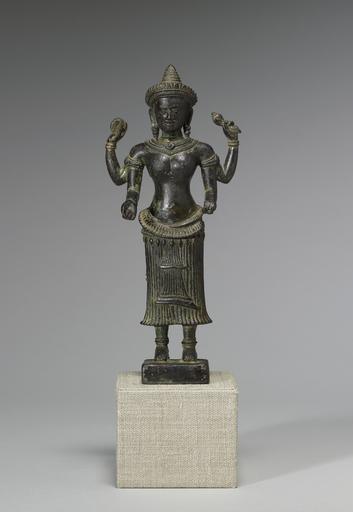 Keywords: Cambodian - The Hindu Goddess Devi - Walters 542656.jpg Shiva's wife sometimes known as Devi here carries the attributes of her brother Vishnu to whom the contemporary temple of Angkor Wat was dedicated They include a disk upper right a ball lower right; perhaps symbolizing the earth a conch shell upper left and a club lower left; now broken its lower end was once attached to the pedestal The emphasis on horizontal elements the taut skin and the sharply defined textures are characteristic of the classical Cambodian style between 1110 1160 bronze cm 20 8 9 accession number 54 2656 22170 Pan-Asian Collection Robert Ellsworth New York Sotheby's Sale New York October 5 1990 no 136 Walters Art Museum 1990 by purchase Museum purchase 1990 place of origin Angkor Wat in Angkor Cambodia Walters Art Museum license Southeast Asian art in the Walters Art Museum Sculptures from Cambodia Media contributed by the Walters Art Museum needs category review |