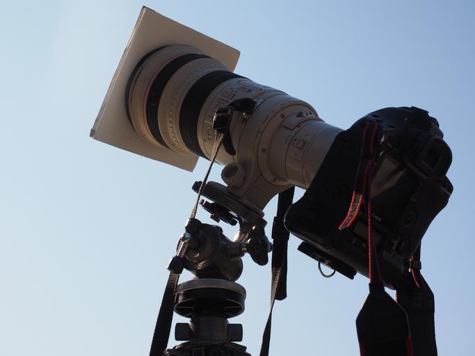 Keywords: camera lens antiglare telephoto lens professional equipment recording facilities tripod technology sun protection solar eclipse canon