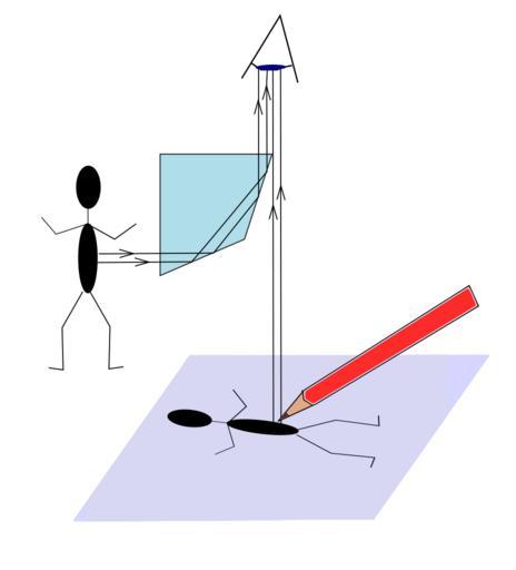 Keywords: Camera-lucida-scheme.svg en Scheme illustrates funktion of camera lucida cs Schéma znázorňující funkci zařízení camera lucida own H Seldon 2009-09-13 Optical devices Drawings about the camera lucida device