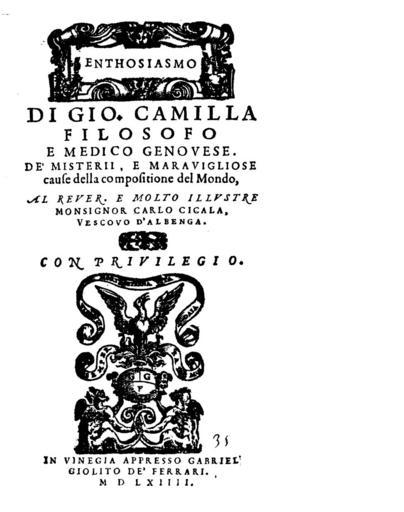 | Keywords: Camilla - De' misterii e maravigliose cause della compositione del mondo, 1564 - 1236988.jpg Book Camilla Giovanni De' misterii e maravigliose cause della compositione del mondo appresso Gabriel Giolito de' Ferrari In Vinegia lat it Enthosiasmo di Gio Camilla filosofo e medico genouese De' misterii e marauigliose cause della compositione del mondo - In Vinegia appresso Gabriel Giolito de' Ferrari 1564 Venezia Gabriel Giolito de Ferrari - 16 110 2 p ; 8ยบ BEIC 1236988 Institution BEIC PD-old-100-1923 Natura - Concezione - sec 16 Philosophy |