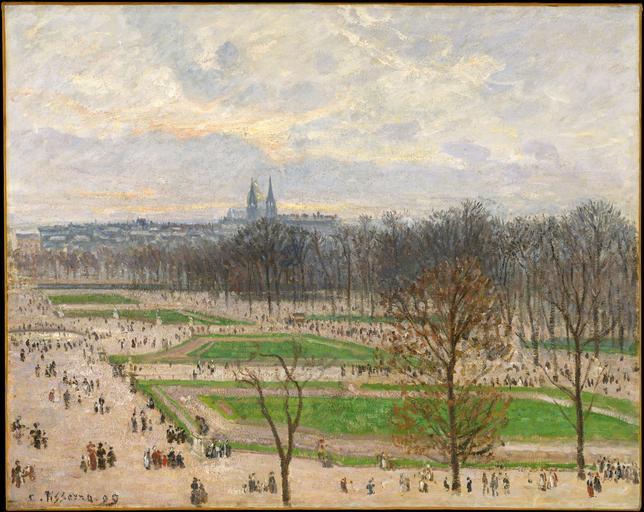 Keywords: Camille Pissarro, The Garden of the Tuileries on a Winter Afternoon, 1899.jpg Artwork Q19911912 Creator Camille Pissarro 1899 Oil on canvas cm 73 3 92 4 Institution Metropolitan Museum of Art Gallery 820 object history exhibition history credit line ProvenanceEvent 1966 gift Katrin S Vietor in loving memory of Ernest G Vietor Signed and dated lower left C Pissarro 99 accession number 66 36 110001762 PD-old-100 DEFAULTSORT Pissarro Garden of the Tuileries on a Winter Afternoon The Garden of the Tuileries on a Winter Afternoon by Camille Pissarro Paintings by Camille Pissarro in the Metropolitan Museum of Art Images of Paris from the Metropolitan Museum of Art |