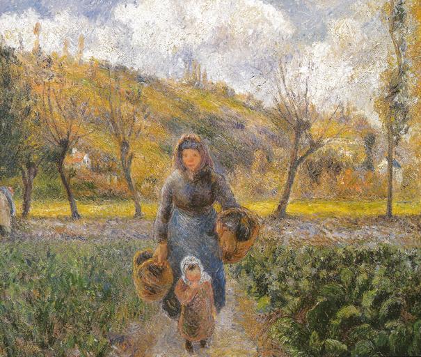 Keywords: Camille Pissarro - In the Vegetable Garden.jpg Artwork Creator Camille Pissarro Title Bondekone og barn vender tilbage fra marken Auvers-sur-Oise Peasant Woman and Child Returning from the Fields Auvers-sur-Oise or In the Vegetable Garden Paysanne et enfant revenant des champs Auvers-sur-Oise V zelinářské zahradě ve Val Hermeé v Eragny 1881 oil canvas cm 45 5 55 Institution Národní galerie v Praze Veletržní palác accession number O 12509 http //www flickr com/photos/mbell1975/6342103122/ PD-old-100 other versions Q21694335 Paintings of peasants by Camille Pissarro 1881 paintings in France Éragny-sur-Epte Paintings in the Veletržní palác Paintings of women with baskets 1881 paintings by Camille Pissarro Portrait paintings by Camille Pissarro |