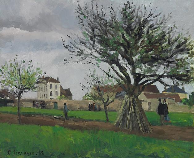 | Keywords: Camille Pissarro - Pommiers Pontoise (La maison du père Gallien).jpg Artwork Creator Camille Pissarro Title Æbletræer i Pontoise Père Galliens hus Apple Trees at Pontoise the House of Père Gallien Pommiers à Pontoise La maison du père Gallien 1868 oil on canvas cm 38 3 46 4 Institution Private collection accession number C Pissarro 68 ~ lower left signature and date 2009 11 03 page no longer available see also http //www christies com/lotfinder/ZoomImage aspx image /LotFinderImages/D52585/D5258550 File page Other versions http //nevsepic com ua/uploads/posts/2012-07/1343406631-1901190-apple-trees-at-pontoise-the-house-of-pere-galien-1885 jpg Image by nevsepic com ua Q21716250 PD-old-100 Paintings of Pontoise by Camille Pissarro 1860s landscape paintings Apple trees in art 1868 paintings by Camille Pissarro |