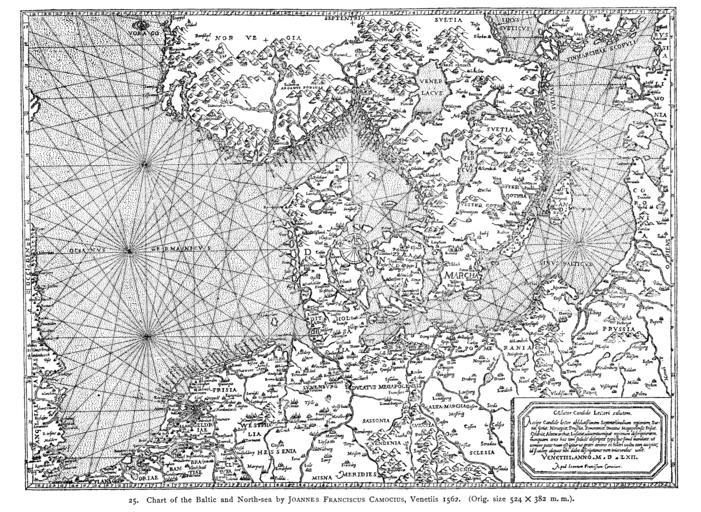 Keywords: Camocius 1562.png en A 1562 Venetian copper engraved copy by Camocius of the Caerte van Oostlant first edition PD-old-100 Camocius 1562 Credit line http //en wikipedia org/wiki/User 3APortolanero Wikimedia Commons CC-BY-3 0 Maps of the Baltic Sea |