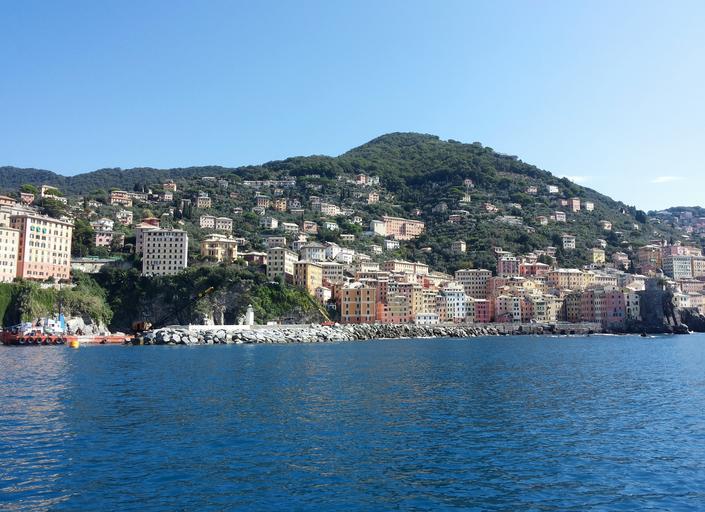 Keywords: camogli costa mountain lake sea buildings houses summer holidays