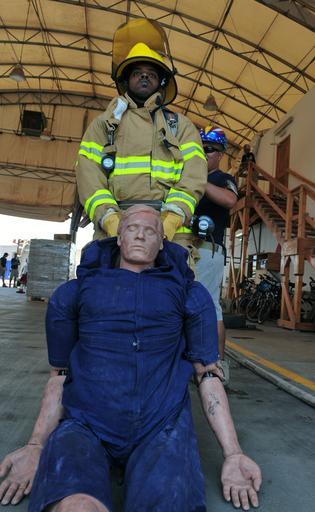 Keywords: Camp Lemonnier activity DVIDS272751.jpg en A Djiboutian national hoping to be recruited by the Camp Lemonnier Djibouti fire department drags a 180-pound mannequin while participating in CLDJ's firefighter agility drill April 24 The agility drill is an obstacle course that tests the endurance strength and basic skills of firefighters and is used as a benchmark for potential firefighter recruits 2010-04-24 Petty Officer 2nd Class Marc Rockwell-Pate https //www dvidshub net/image/272751 100424-N-+++++-100 2010-04-24 11 34 CAMP LEMONNIER DJ PD-USGov-Military-Navy Camp Lemonnier Images from DoD uploaded by Fæ |