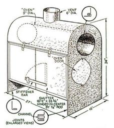 | Keywords: drawing sketch cartoon illustration indoor white background text Popular Science July 1937 Stove Canopy. The canopy illustrated, according to its designer, Harold P. Rykken, will get rid of most of the cooking odors and gas fumes from the trailer stove, and when the weather is chilly, it can easily be converted into a heater. The material is 26-gauge galvanized or black iron. To use as a heater, the front shutter is slipped into the side channels and then up into the upper channel. The 9-in. tube near the top of the campy is for additional heating surface and can be used for warming small dishes when the “oven” doors are closed. If this feature is omitted, some expense may be saved and the canopy will gain slightly in efficiency, but more than 5 sq. ft. of heating surface is lost. The vent should run straight tip, and the collar may have to be placed off center in order to avoid a ceiling joist. Install a 6-in. damper in the collar and a ventilator on the roof. In most cases the canopy will have to be made in a sheet-metal shop. haw-creek.com/improved-trailer-fittings-make-life-on-whee... Popular Science July 1937 Stove Canopy. The canopy illustrated, according to its designer, Harold P. Rykken, will get rid of most of the cooking odors and gas fumes from the trailer stove, and when the weather is chilly, it can easily be converted into a heater. The material is 26-gauge galvanized or black iron. To use as a heater, the front shutter is slipped into the side channels and then up into the upper channel. The 9-in. tube near the top of the campy is for additional heating surface and can be used for warming small dishes when the “oven” doors are closed. If this feature is omitted, some expense may be saved and the canopy will gain slightly in efficiency, but more than 5 sq. ft. of heating surface is lost. The vent should run straight tip, and the collar may have to be placed off center in order to avoid a ceiling joist. Install a 6-in. damper in the collar and a ventilator on the roof. In most cases the canopy will have to be made in a sheet-metal shop. haw-creek.com/improved-trailer-fittings-make-life-on-whee... |