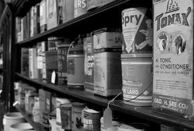 Keywords: can container antique rustic shelf logo perspective still vintage
