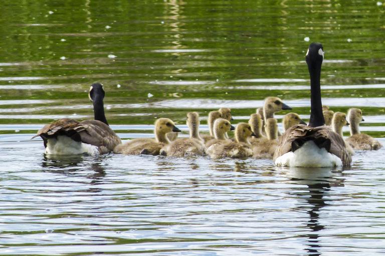 Keywords: canada goose chicks young geese nature wildlife goslings baby animal outdoor feathered water swimming beautiful together family birds cute