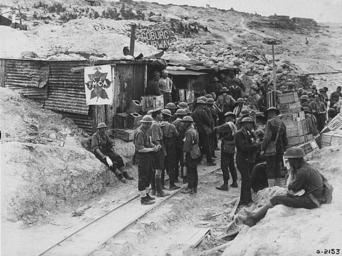 Keywords: Canada YMCA hut at Coburg Subway - Canadian Official War Photographs (BL l.r.233.b.57.v3 f052r) (cropped).jpg en Canadian soldiers at the YMCA hut at Coburg Subway in 1918 Coburg Subway was the northern most subway in the Vimy Sector and was 407 metres long A similar image taken at the same time is held by the Australian War Memorial museum under reference P00275 001 <p>This is a single image from a bound selection of the Canadian Government's official photographic series from World War I The collection of 1772 images representing around a third of all the official photographs known to exist in the series was deposited at the British Museum in 1919/20 as part of the official copyright deposit collection Individual photographs are not labelled and no index has survived but in many cases a number of the form O 123 can be seen in the corner This appears to represent an official numbering sequence Some prints have been cropped and so the number is no longer visible; however they appear to be bound in sequence The volumes are numbered 1-4 and each page is recorded as f001r f002r etc 1918 Photographic prints on card backing Institution British Library object history credit line accession number l r 233 b 57 v3_f052r Picturing Canada image 36263 37315 1990 2058 British Library image l r 233 b 57 l r 233 b 57 v3_f052r PD-Canada PD-1923 Canadian Official War Photographs BL l r 233 b 57 v3 f052r jpg Picturing Canada images missing coordinates Cropped images from Canadian Official War Photographs bound volumes from World War I British Library LR 233 b 57 Canadian Official Photographs Canada in World War I in 1918 YMCAs in Canada Corrugated iron buildings Shacks |