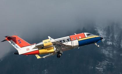 Keywords: canadair challenger aircraft departing innsbruck airplane small journey flight transportation