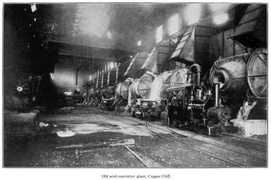 Keywords: Canadian Copper Company acid converters.png fr Un alignement des 10 convertisseurs acides Manhès-David type Allis-Chalmers exploités par la Canadian Copper Company avnt 1911 La cornue métallique faisait 84 < 126 pouces Si la matte de départ contenait 36 Ni+Cu le revêtement acide durait 8 heures ou 7 tonnes de matte convertie à 80 Ni+Cu ; chaque soufflage durant 1h 5 min Si la matte de départ contenait 30 Ni+Cu le revêtement acide durait 5 3 tonnes de matte convertie chaque soufflage durant 1h 15 min en A set of the 10 Manhès-David acid converters Allis-Chalmers type operated by the Canadian Copper Company before 1911 The shell was 84 x 126 inches If the starting matte was 36 Ni+Cu the acid lining lasted 8 hours or 7 tons of 80 Ni+Cu converted matte ; each blow lasting 1h 5min If the starting matte was 30 Ni+Cu the acid lining lasted 5 3 tons of converted matte ; each blow lasting 1h 15min 1913 https //archive org/details/nickelindustrywi00cole The nickel industry; with special reference to the Sudbury region Ontario plate XLIX Arthur Philemon Coleman other versions Custom license marker 2015 06 07 pd-old pd-us Uploaded with UploadWizard Manhès-David converters Canadian Copper Company nickel smelter |