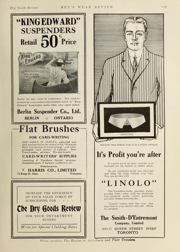 Keywords: public domain mens catalog trade journal vintage men text monochrome writing Public Domain: Canadian Trade Journals Collection archive.org/details/canadiantradejournals?and%5B0%5D=subj... Public Domain: Canadian Trade Journals Collection archive.org/details/canadiantradejournals?and%5B0%5D=subj...