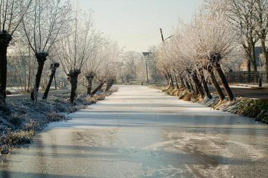 Keywords: canal bach water running frozen winter snow wintry trees cold snowy low country