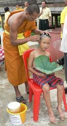 Keywords: Candidate for the Buddhist novice in the Buddhist religion priesthood 03.jpg Photo by Tevaprapas Makklay 2007 a monk is shaving off candidate for the Buddhist priesthood head for reaches the ceremony ordains to are a novice in the Buddhist religion a monk is shaving off candidate for the Buddhist priesthood head for reaches the ceremony ordains to are a novice in the Buddhist religion own 2007 āđ āļāļ§āļāļĢāļ°āļ āļēāļŠ āļĄāļēāļāļāļĨāđāļēāļĒ Ordination at Wat Khung Taphao Buddhist child monks ordination of Thailand Buddhist traditions in Wat Khung Taphao Shaving |