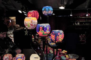 Keywords: candles christmas market window lamp shells colorful tea lights