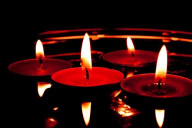 Keywords: candles light flame candlelight burn tea lights dark mirroring red wave water