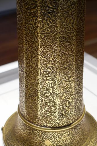 Keywords: Candlestick made by 'Abd ol-Vahhab b. Elah-Dad for Sheykh Abo'l-Hasan b. Sheykh Nader-Qoli, Iran, early to mid 16th century AD, brass with black compound, view 2- Aga Khan Museum - Toronto, Canada - DSC07001.jpg en Exhibit in the Aga Khan Museum - Toronto Canada This work is old enough so that it is in the public domain Photography was permitted in the museum without restriction 2015-10-06 12 48 20 own Daderot other versions PD-old-100 cc-zero Metalwork of Iran in the Aga Khan Museum |